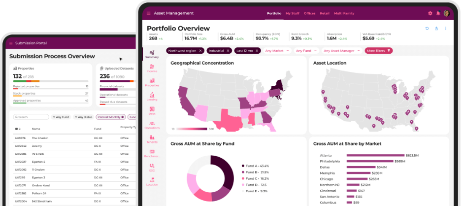 Data from Yardi, MRI, Excel, CRM platforms, third-party managers, and external market feeds are centralized.